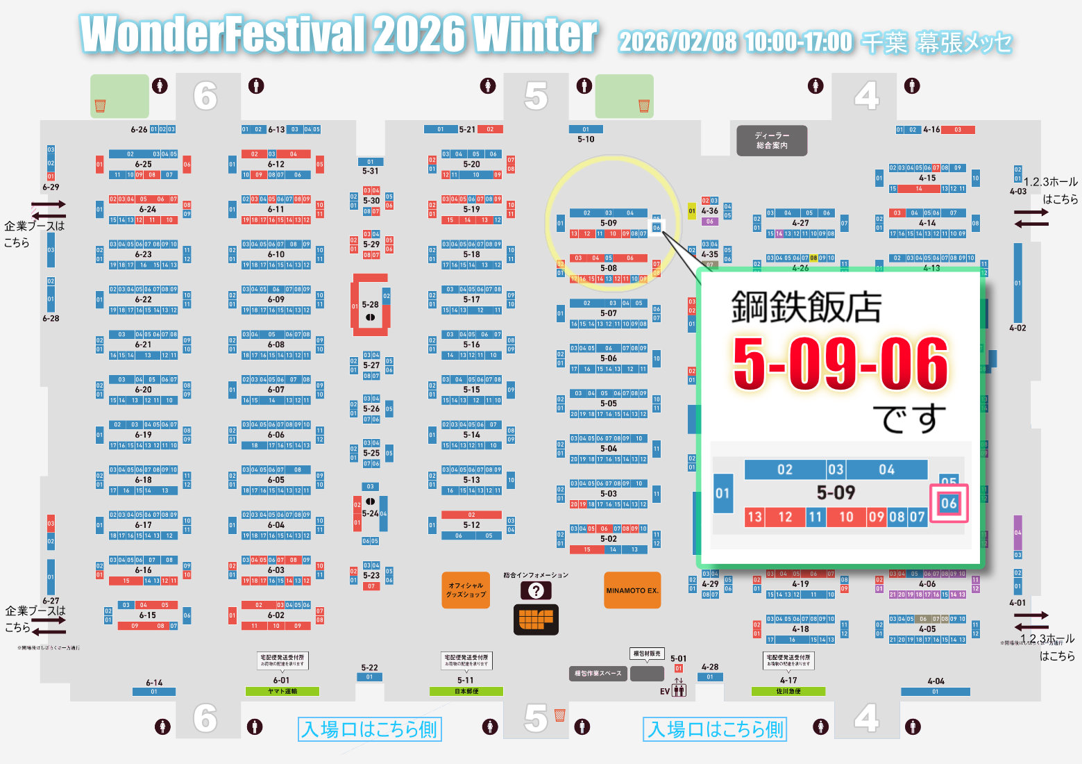 ワンダーフェスティバル2025冬での鋼鉄飯店の卓の位置は、
